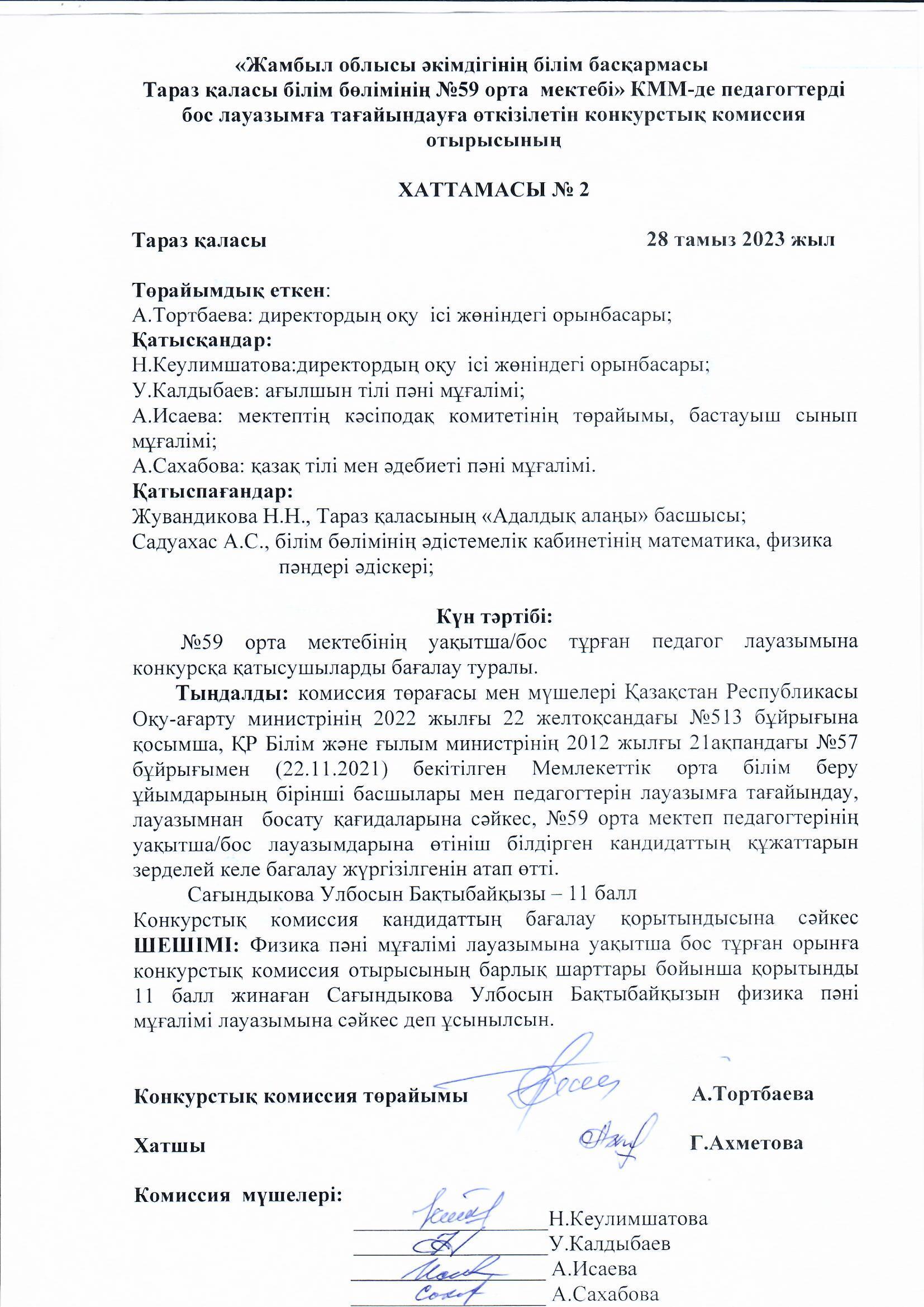 08 қыркүйек 2023 Конкурс нәтижесі
