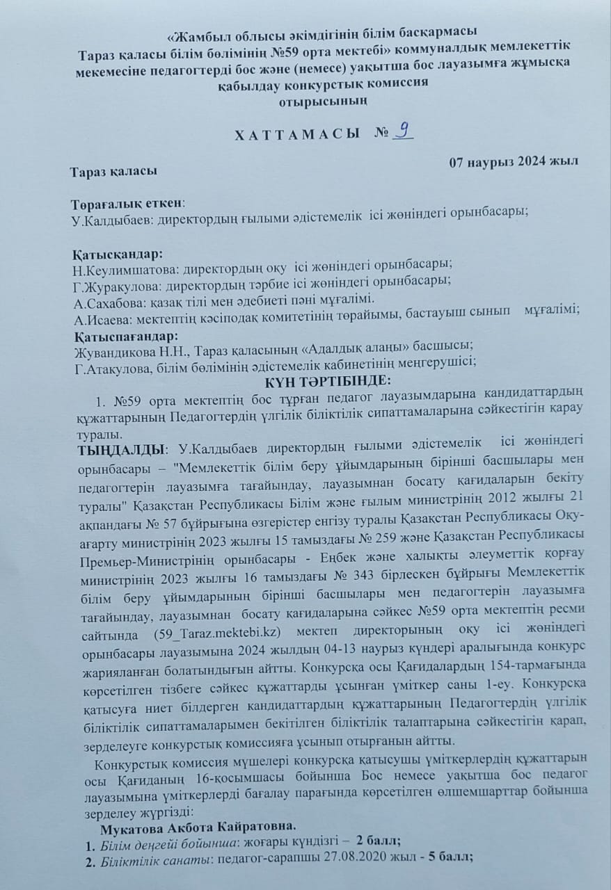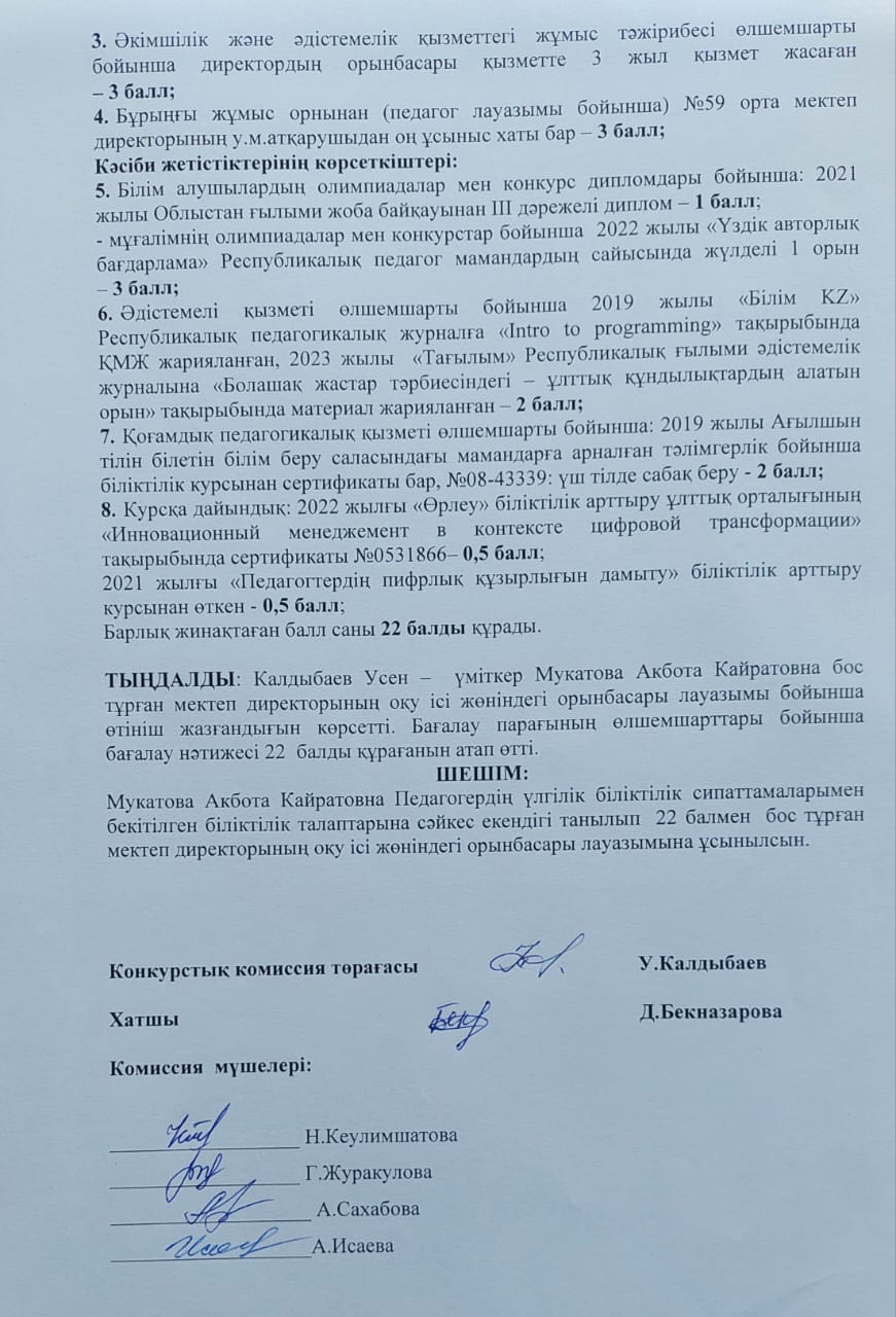 Конкурс нәтижесі туралы » №59 орта мектеп