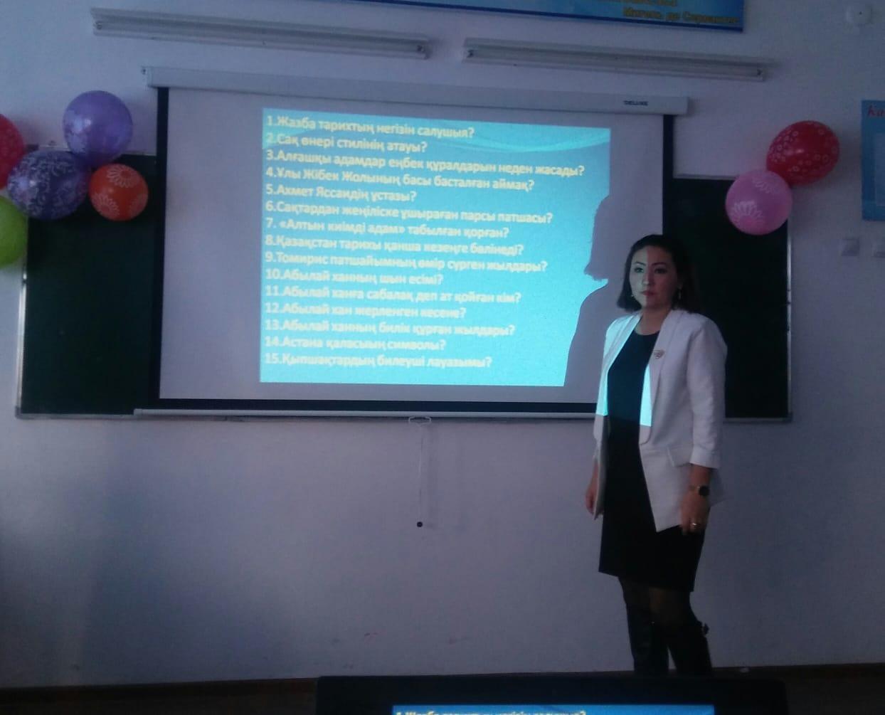 29-30 қаңтар аралығында 2019ж . тарих пәнінің мұғалімдері З.К.Казакбаева, К.С Аубакирова «Озып шығар бәйгеден ,білімдері сай келген» тақырыбы бойынша оқушылардың білімің тереңдету мақсатында. 9 «А»,9 «Ә», 9 «Б» сыныптар арасында мектепшілік олимпиада өткізілді.