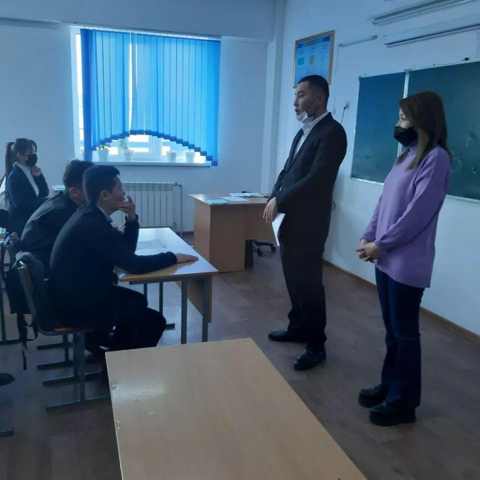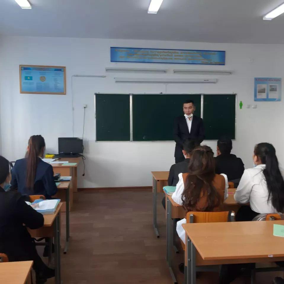 Кәсіптік бағдар беруді негізге ала отырып, мектебіміздің 11 сынып оқушыларымен кездесіп, мамандық таңдау үшін түсіндірме жұмыстарын жүргізу мақсатында М.Х.Дулати атындағы Тараз Мемлекеттік Университеті, химия-биология кафедрасының аға оқытушылары келіп, кездесу өткізді.