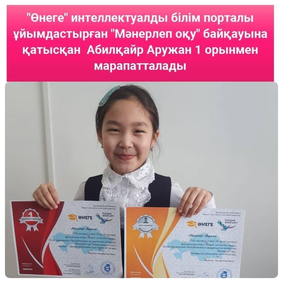 13 наурыз 2020 0 1 2 3 4 5 Өнеге интелектуальды білім порталы ұйымдастырған мәнерлеп оқу байқауының жеңімпазы Өнеге интелектуальды білім порталы ұйымдастырған мәнерлеп оқу байқауының жеңімпазы Әбілқайыр Аружан