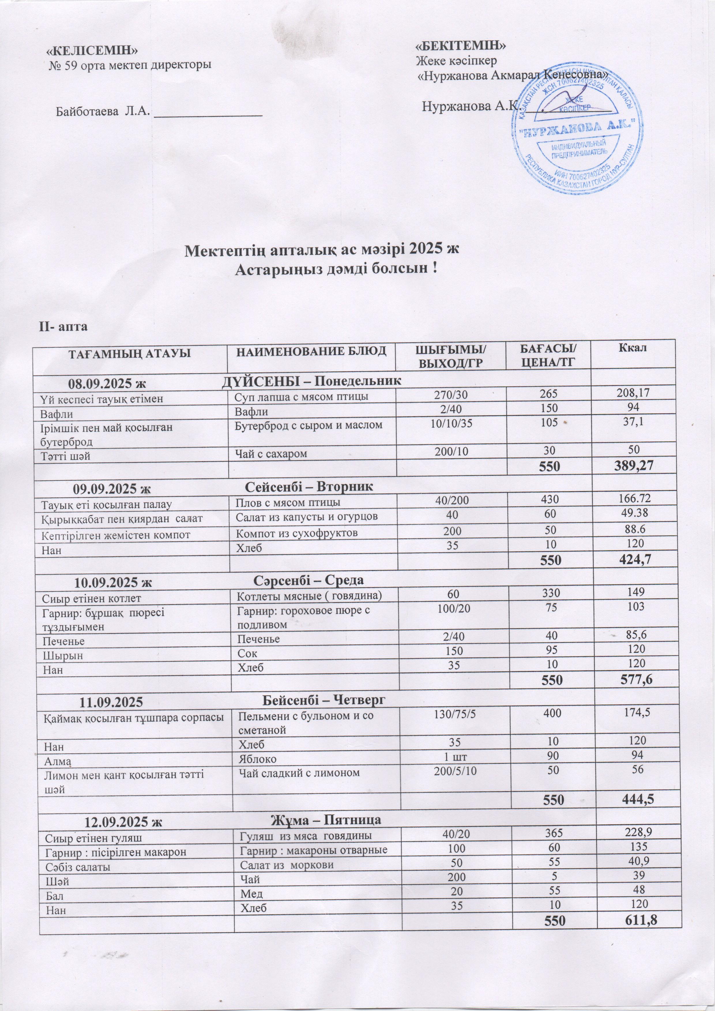 08.09-12.09.2025 Апталық ас мәзірі » №59 орта мектеп