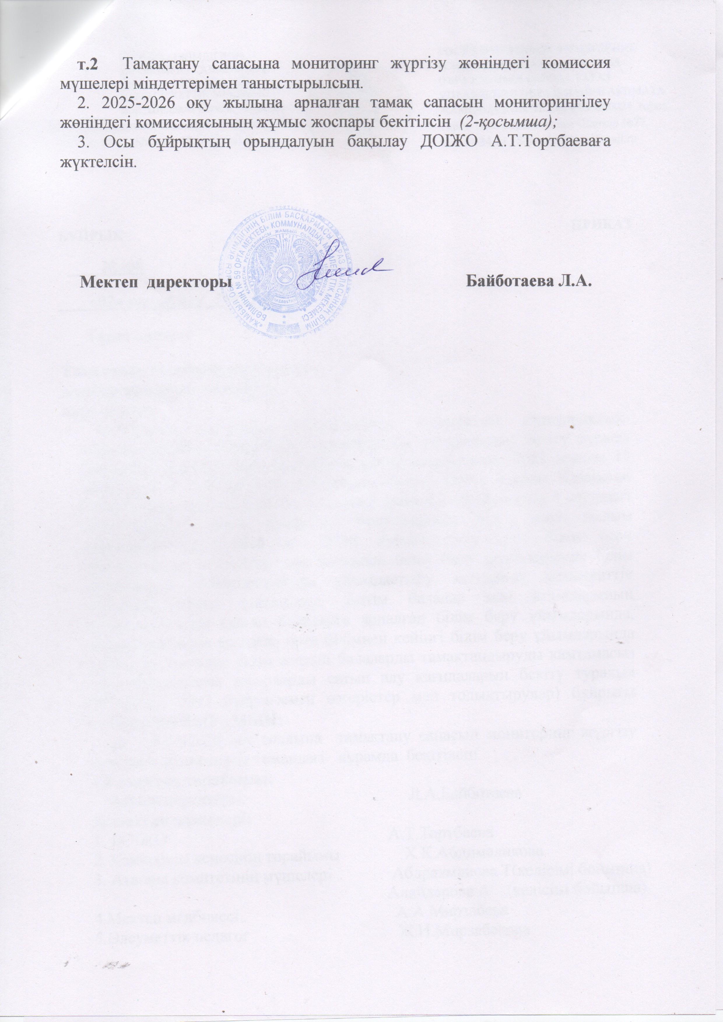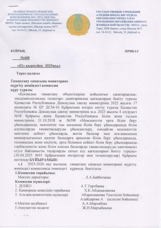 Тамақтану сапасына мониторинг жүргізу жөніндегі комиссия құру » №59 орта мектеп