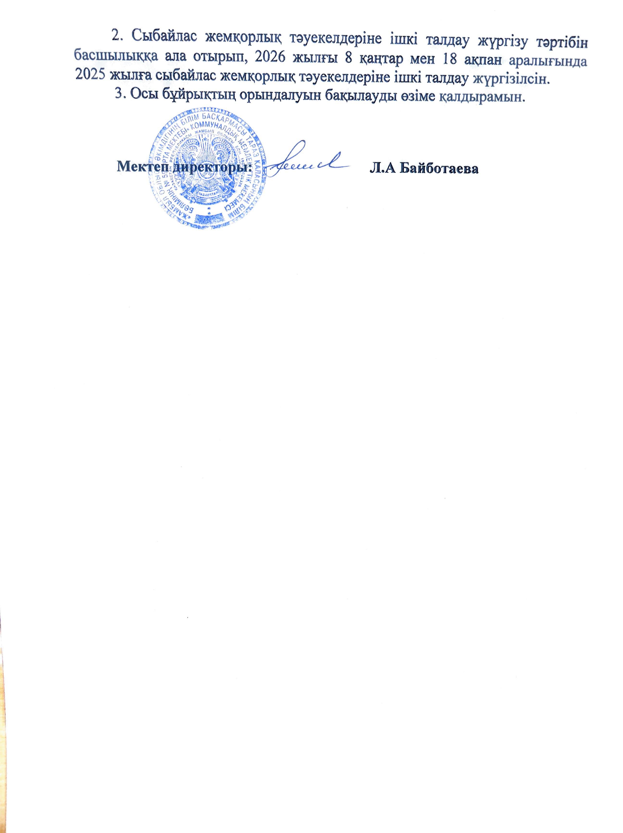 04 наурыз 2026 0 1 2 3 4 5 Сыбайлас жемқорлық тәуекелдеріне ішкі талдау жүргізу туралы бұйрық Сыбайлас жемқорлық тәуекелдеріне ішкі талдау жүргізу туралы бұйрық
